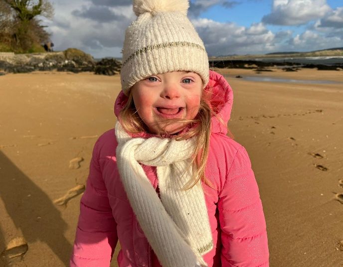 - Maisie has been going to ballet classes for six months now and she really loves it. She’ll know on a Tuesday that’s what we do and she will participate for most of it. I get a sneak peak along with other parents looking through the glass and it’s so lovely watching her enjoying it. Maisie also attends Gaelic on a Saturday, and my other daughter Evie comes along too. My husband works a lot of weekends and my son plays rugby so this is a wonderful sporting and social activity for the girls and myself. It is for kids with additional needs but siblings are welcome and the coaches are so enthusiastic and fun. I always feel happy heading home afterwards although that depends on how easy it is to get Maisie to scoot in the right direction! Funnily enough Maisie listens to her minder Maja who takes her out every friday afternoon, on foot and walks the legs off her. They walk along the main road, go to the playground and the cafe and Maisie is as good as gold for her. I’ll be honest, the more Maisie is contained whether that be in a buggy, a bike seat or in our garden jumping on the trampoline or playing with her toys, the happier and calmer I feel. She’ll just laugh if we chastise her and we find it very hard sometimes to get her to listen to us. We were at the airport recently going through passport control, buggy was on the other side and I ended up carrying a screaming child through as she kept running away from us. Not great for our stress levels or backs but on the plus side she was easily distracted by a fake dinosaur on the other side and we can rely on her older brother now to pick her up if necessary. We booked a place of our own on holiday rather than a hotel room, one of the reasons being she kept escaping from the room last year! So we do what’s easier when we can, and be assured Maisie is still having a blast. Her weary parents get away on their own a couple of times a year, and in saying all of that we do appreciate how lucky we all are!